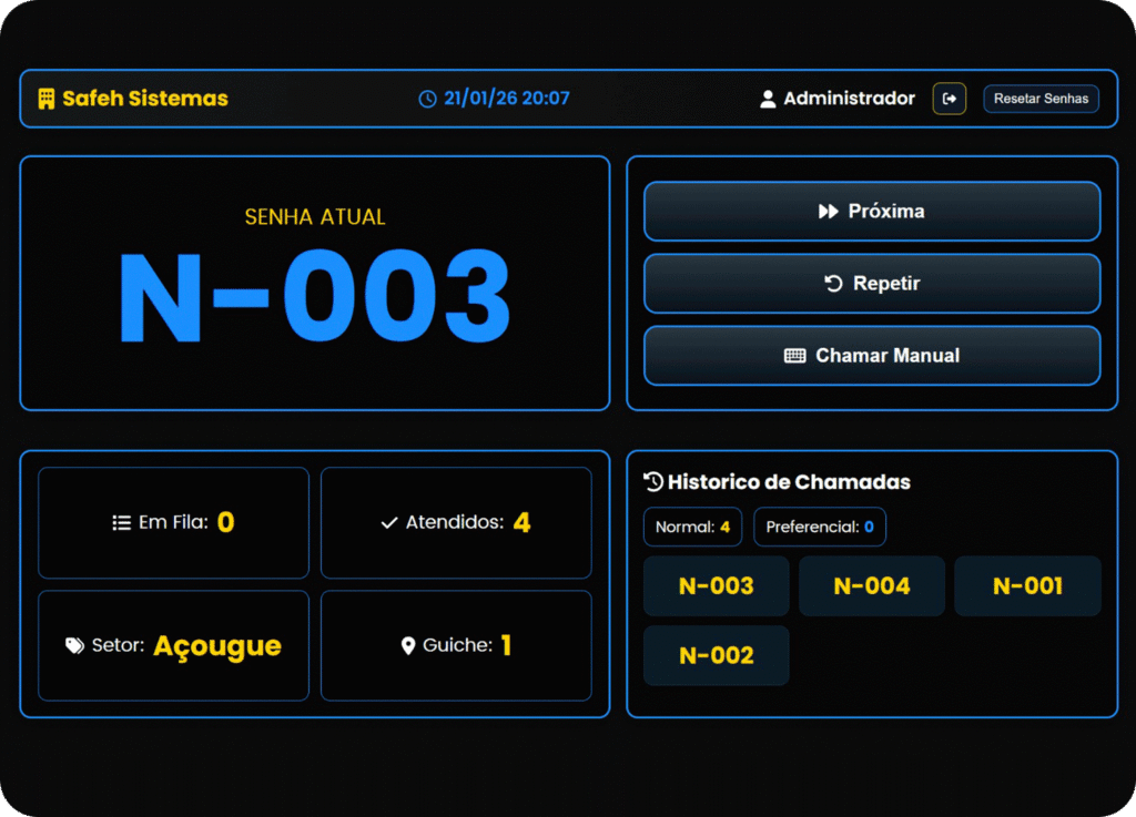 O sistema de senhas moderno para padarias, açougues, clínicas e comércio. Sem servidores caros, sem instalação complicada.